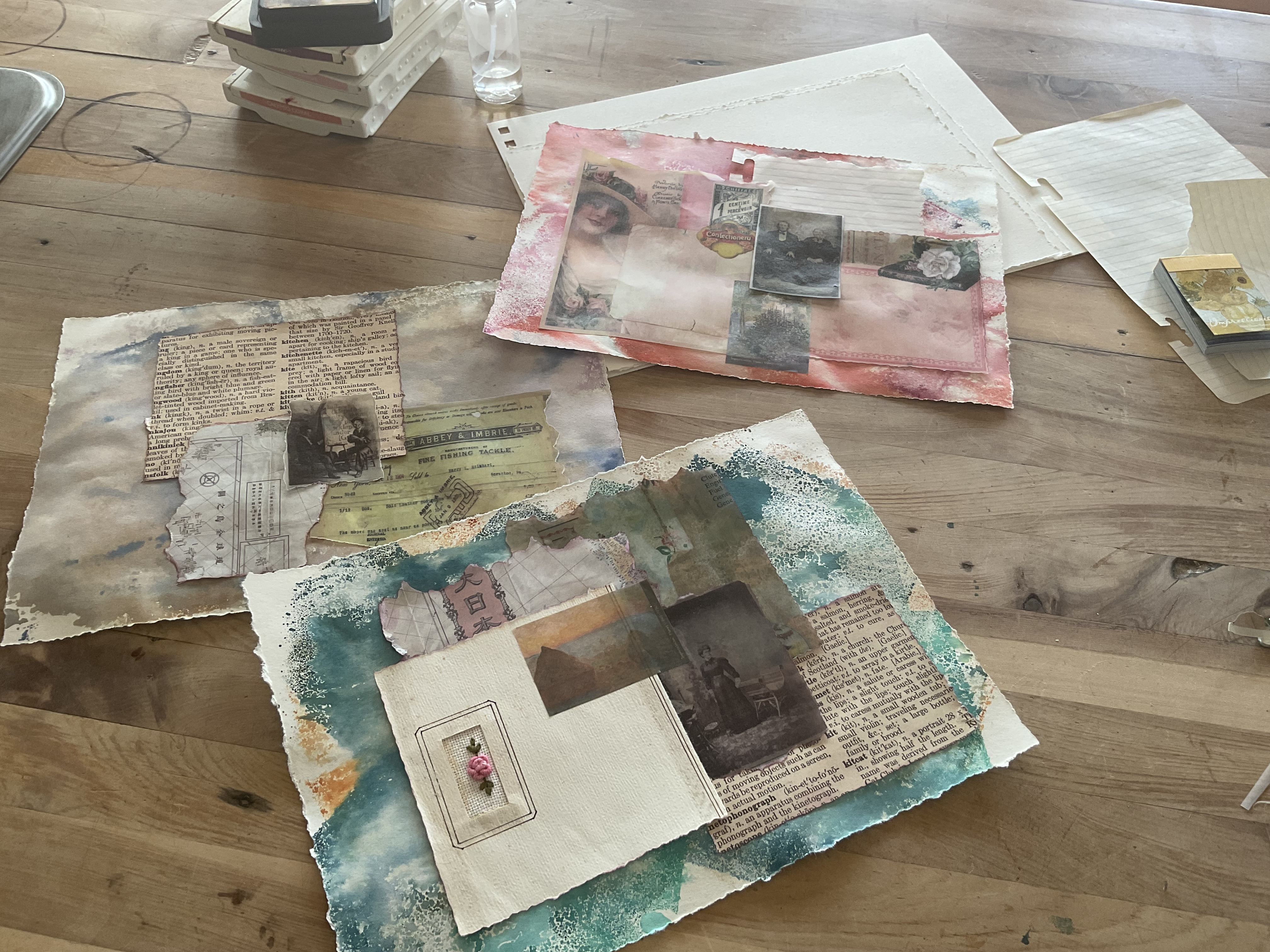 Using my stash, I stamp dyed some 7x10 sheets of plain cream paper.